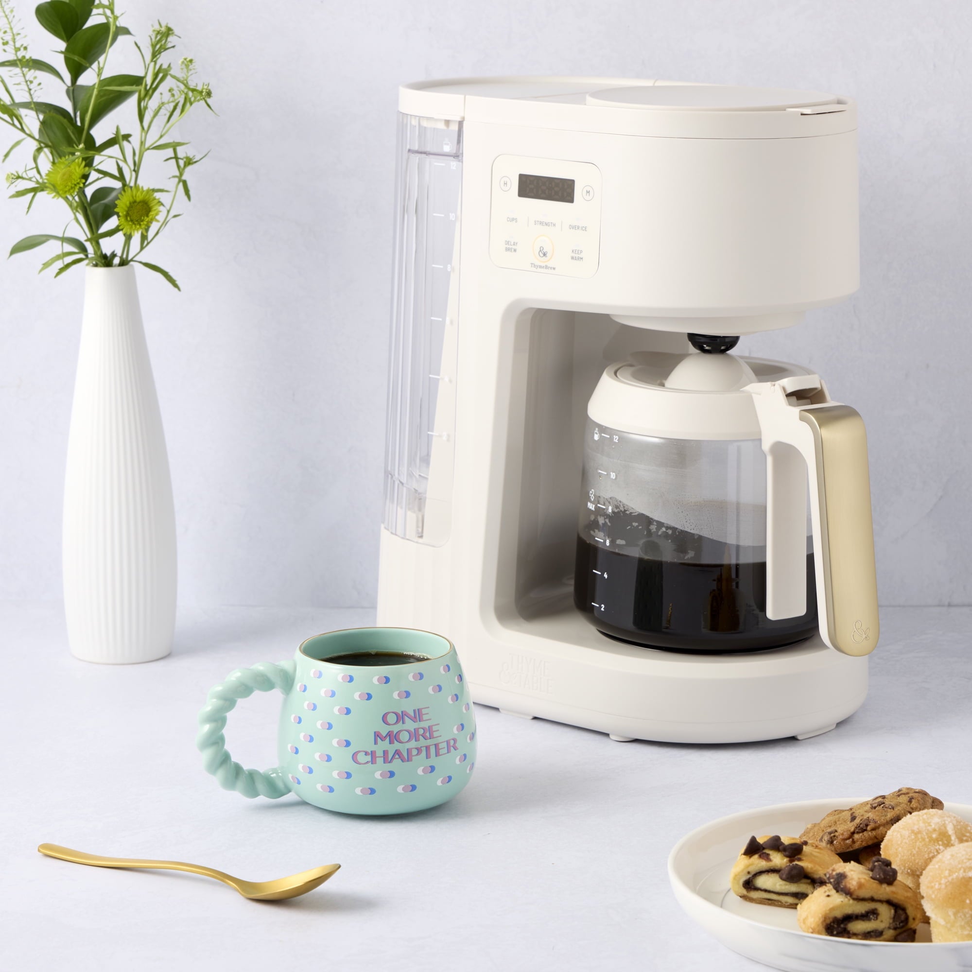 Curl up with a cozy read and the Thyme & Table “One More Chapter” Blue Stoneware Mug. Part of the Cool Girl Collection, this 14.5 fl oz mug features a soft blue finish with playful polka dots and a fun phrase that’s perfect for book lovers. Made from durable stoneware with a sculpted handle for a little extra flair, it’s a cute and comfy pick for your favorite warm drink. Not intended for use in the microwave. Hand wash recommended to keep it looking its best.