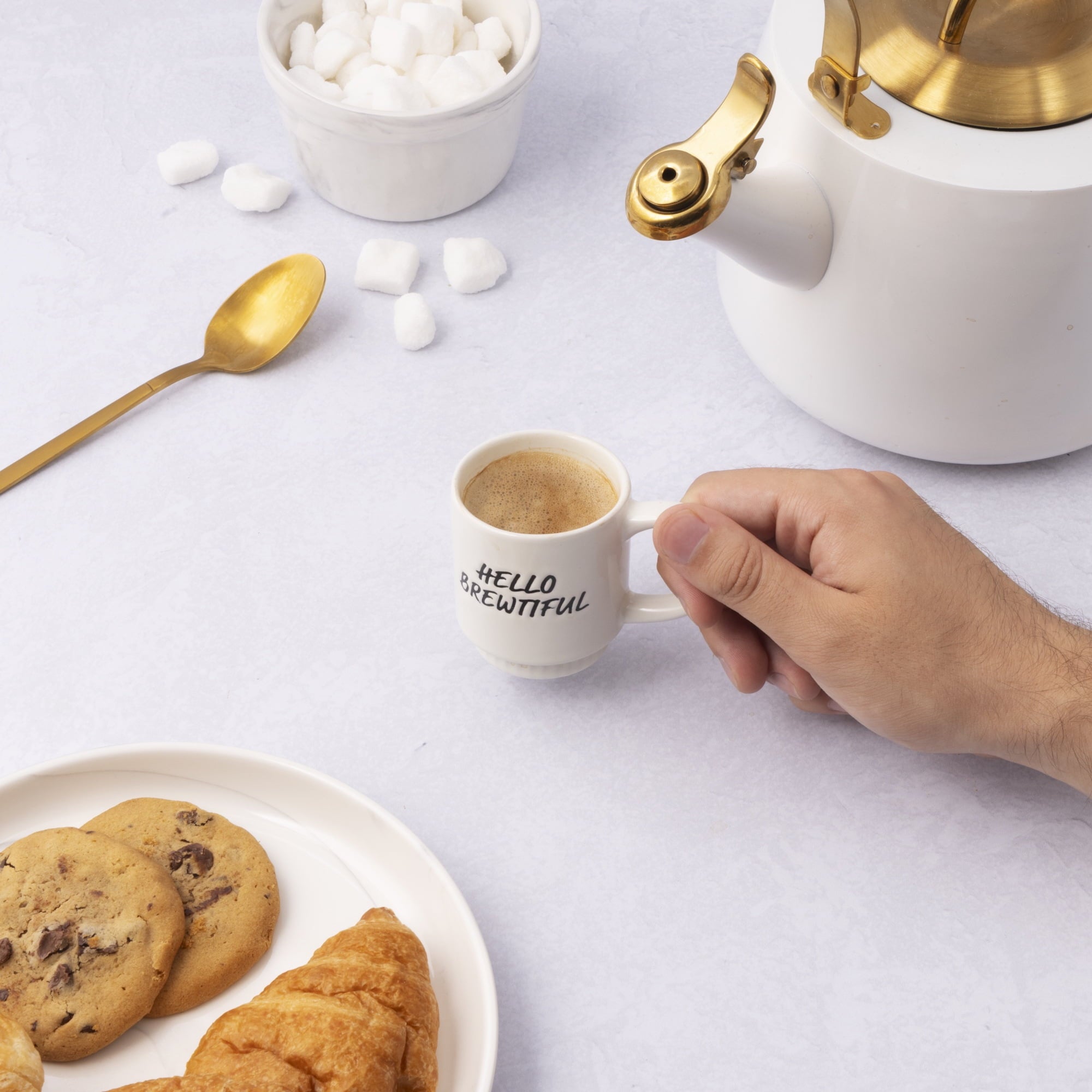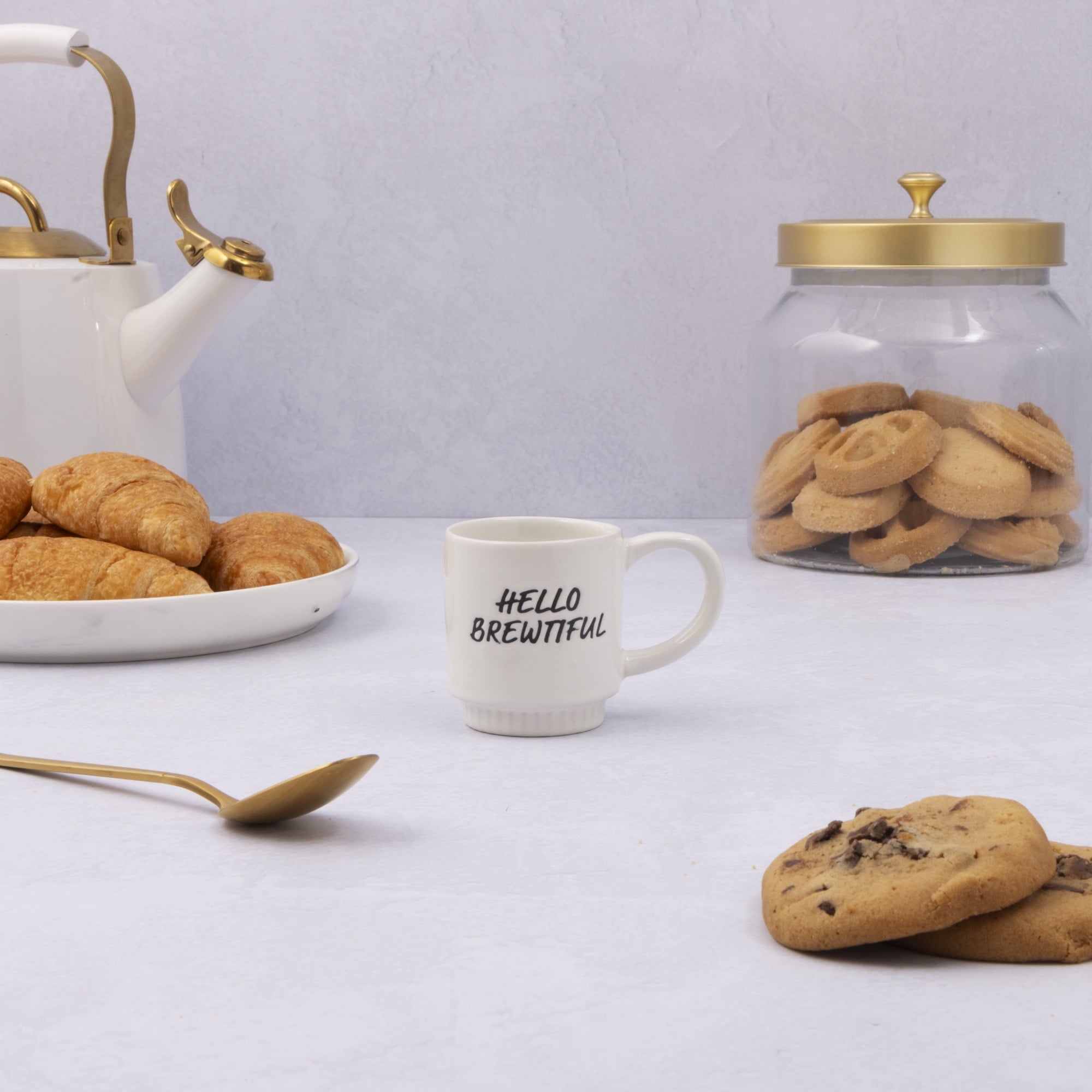 Thyme & Table 3 fl oz White "Hello Brewtiful" Stoneware Espresso Mug