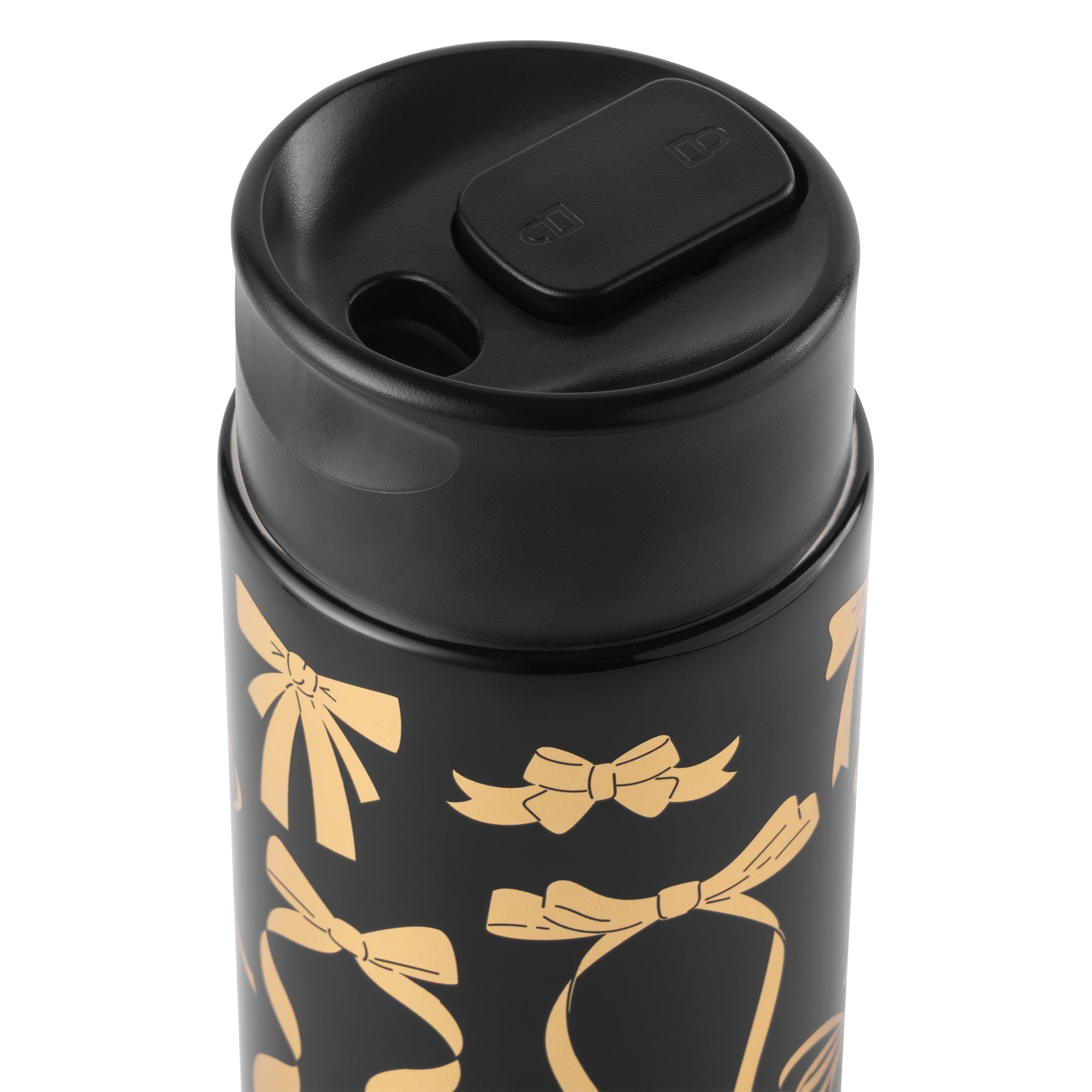 Thyme & Table 22 fl oz Stainless Steel Coffee Tumbler, Black & Gold Bows