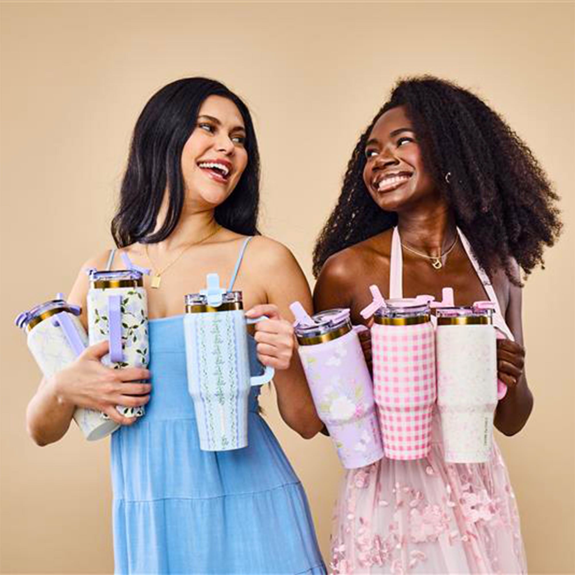 Thyme & Table 32 fl oz Stainless Steel Luna Tumbler with Handle and Dual Straw Lid, Floral
