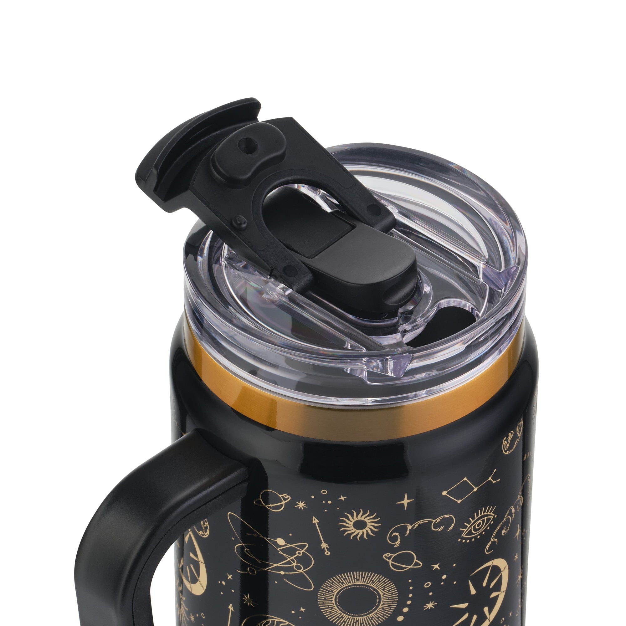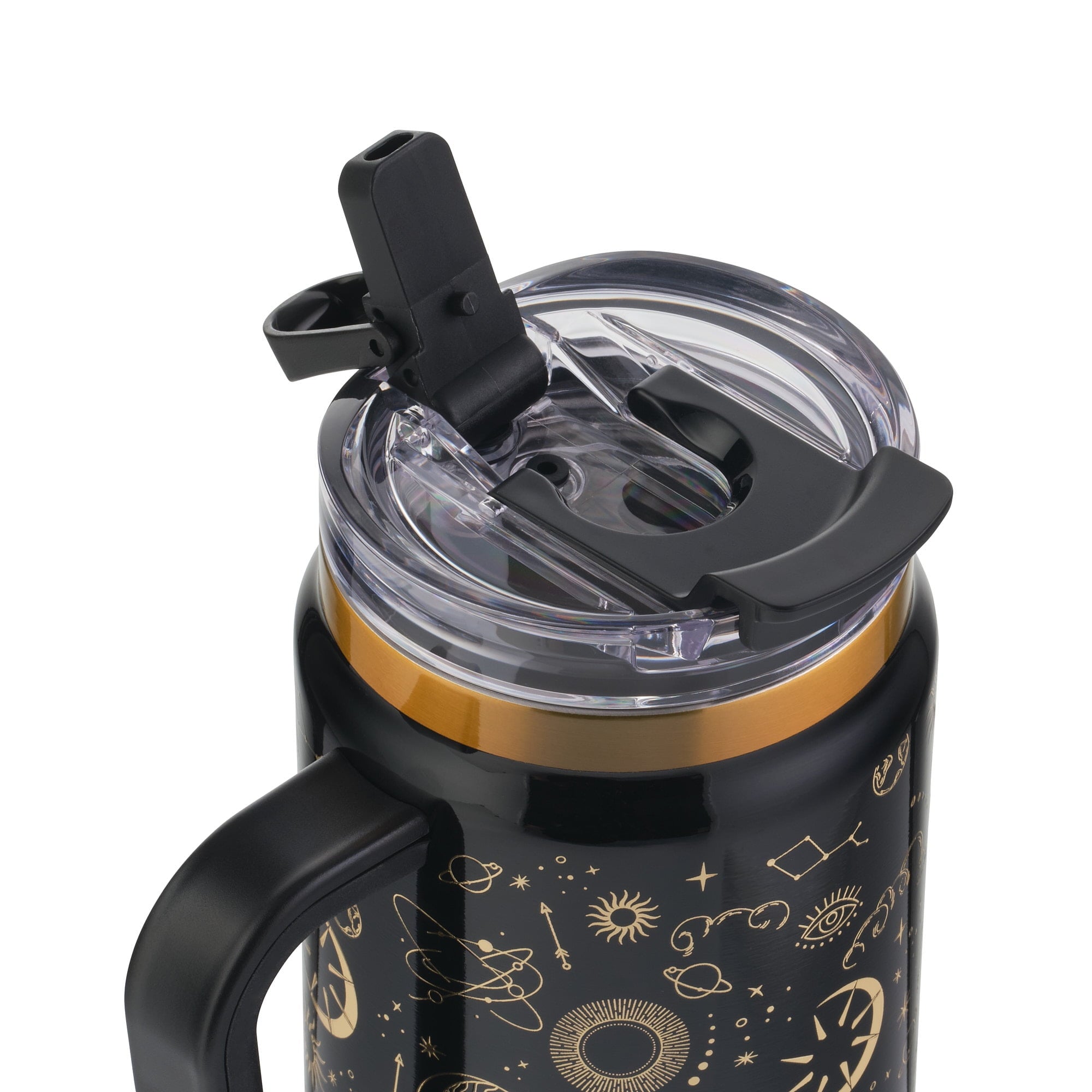 Thyme & Table 32 fl oz Stainless Steel Luna Tumbler with Handle and Dual Straw Lid, Black Zodiac