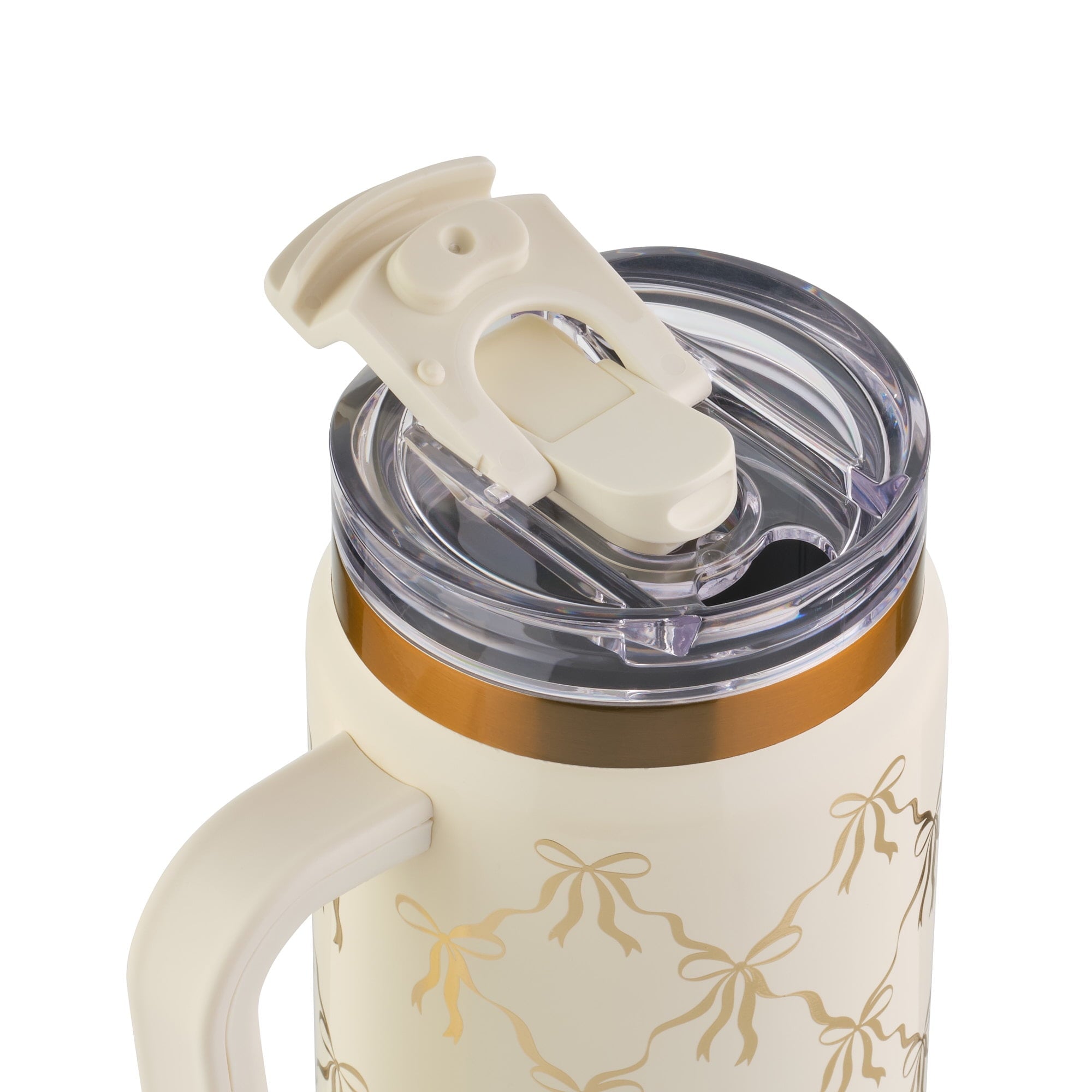 Thyme & Table 32 fl oz Stainless Steel Luna Tumbler with Handle and Dual Straw Lid, Cream Bow