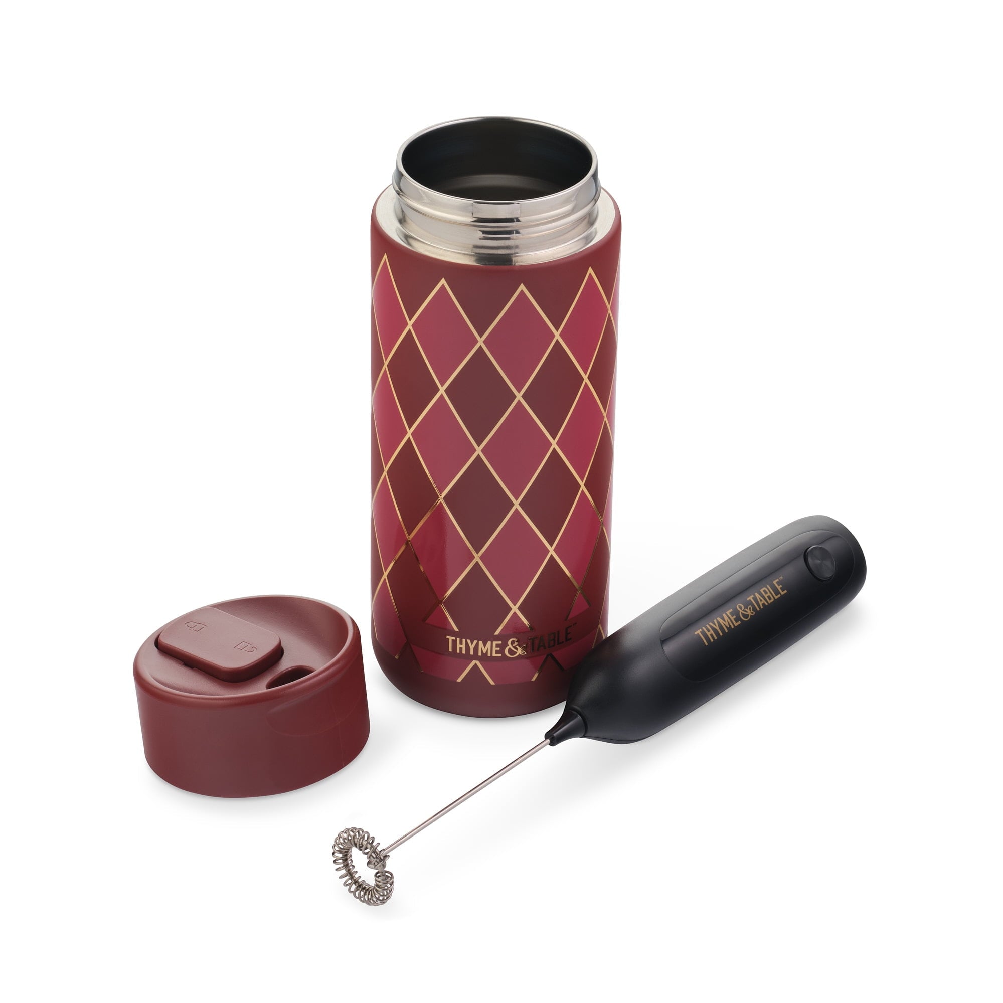 Thyme & Table 22 fl oz Stainless Steel Coffee Tumbler with Frother, Red Diamond