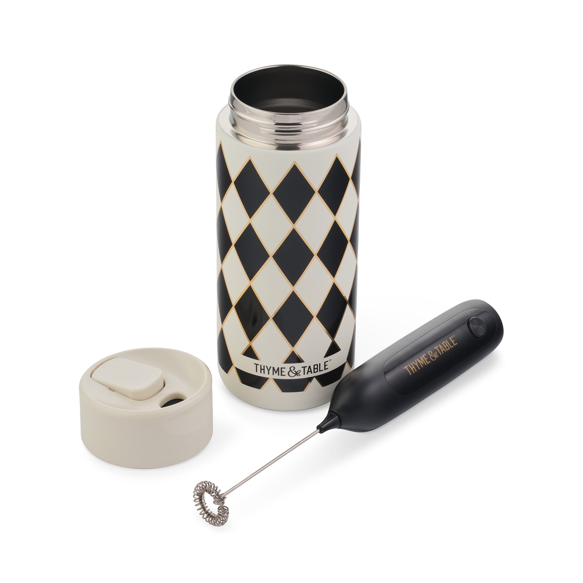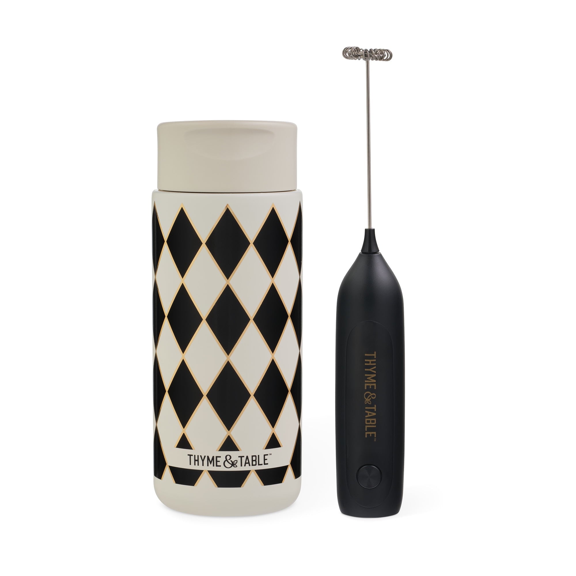 Thyme & Table 22 fl oz Stainless Steel Coffee Tumbler with Frother, Black Diamond